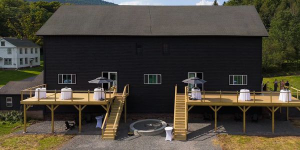 As your guests arrive to The Vista Manor, they are welcomed by two large 14 foot decks that surround the barn. Use the decks or the space underneath for a cocktail hour option. Smoking allowed on the decks